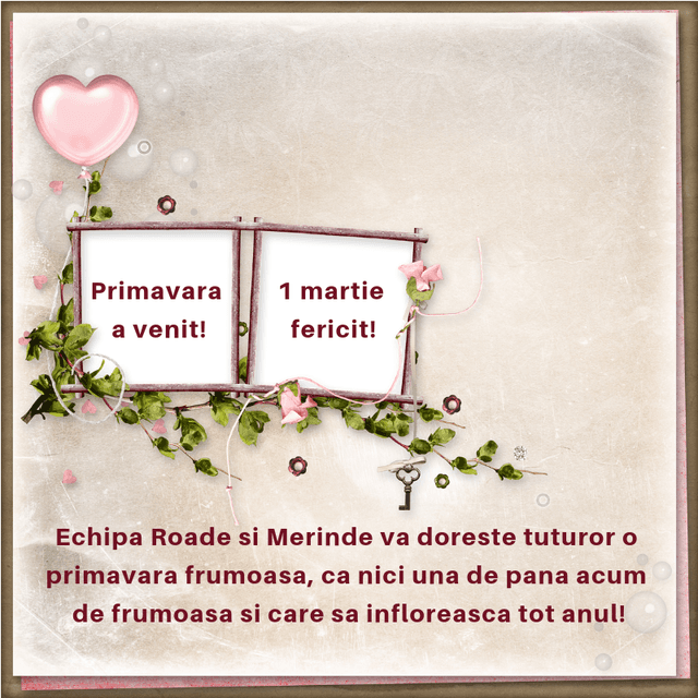 Echipa Roade si Merinde va ureaza tuturor o primavara frumoasa, ca nici una de pana acum, care sa infloreasca tot anul! Va multu...