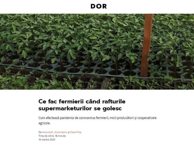Multumim, Decât o Revistă . Cum afectează pandemia de coronavirus fermierii, micii producători și cooperativele agricole. Pentru...